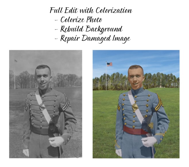 As a West Point graduate, this photo is a family treasure. I corrected it in black and white to maintain the authenticity. I also colorized the photo to modernize it.