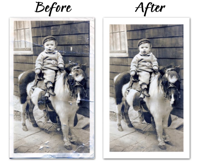 Do you have family photos that are scratched, folded, or damaged in other ways? Let me return them to their original glory.